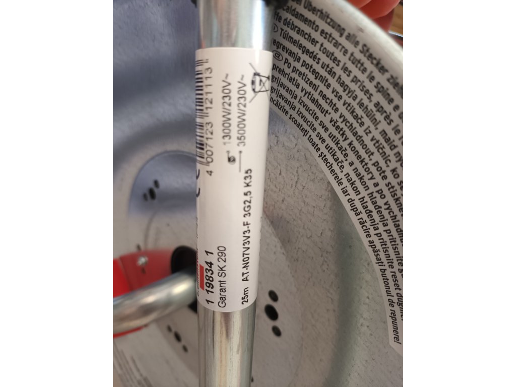 - Délka a typ přívodního kabelu: 25 m AT-N07V3V3-F 3G2,5 BREMAXX (staveništní PVC)