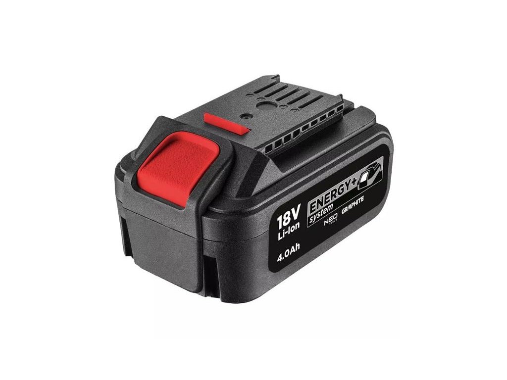 Kompatibilní se zařízeními řady Energy+ od společnosti GRAPHITE , 18V, 4Ah baterie. Lithium-iontový zdroj energie je vybaven elektronickým systémem regulace teploty a proudu . Umožňuje pohodlné nabíjení bez rizika ztráty kapacity ( k tomuto účelu se doporučuje nabíječka baterií GRAPHITE 58G002 Energy+ ). Doba potřebná k dosažení plného nabití je pouze přibližně 120 minut. Tento proces je také usnadněn indikátorem nabíjení zabudovaným v těle . Baterie má bezpečnostní certifikát CE.