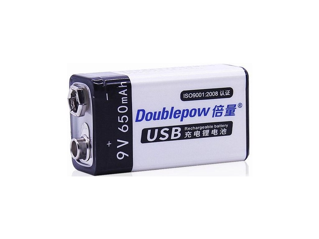 Baterie nabíjecí Li-Ion 9V 650mAh 6F22, Doublepow, napájení USB