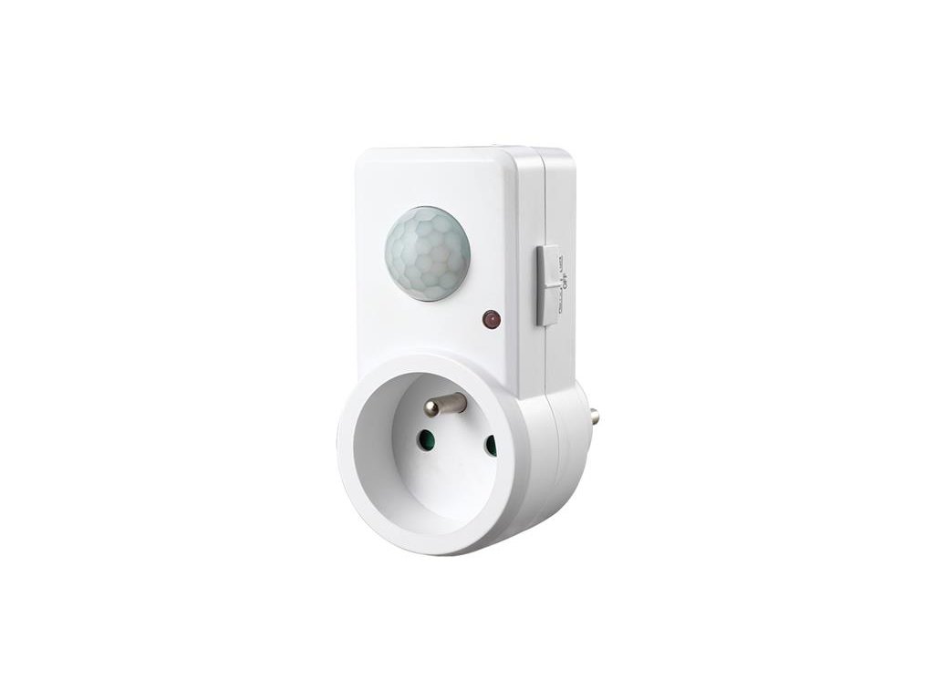 PIR čidlo GS1107 do zásuvky. Čidlo rozlišuje den a noc. Pracuje při různém okolním osvětlení jak ve dne tak v noci když je nastaveno do polohy “sluníčko” (max). Může pracovat v okolním osvětlení nižším než 3LUX když je nastaveno do polohy “měsíček” (min).