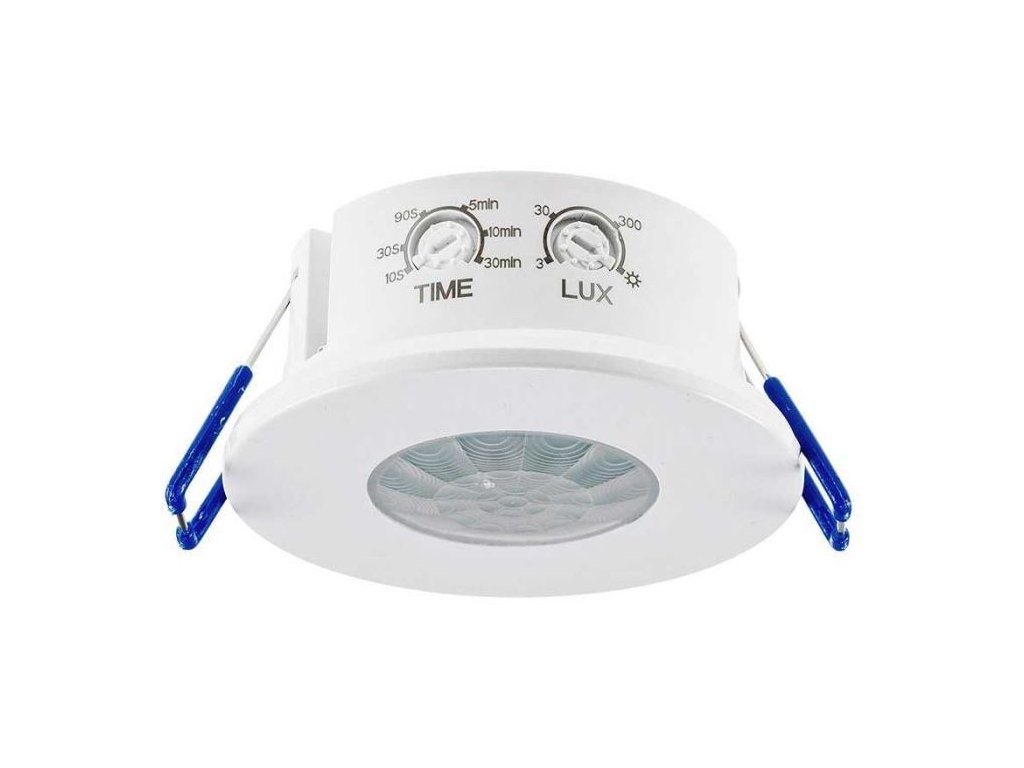 PIR čidlo určené k montáži do otvoru na strop, typicky do podhledů. Odpočítávání doby sepnutí se resetuje s každým novým pohybovým impulsem.