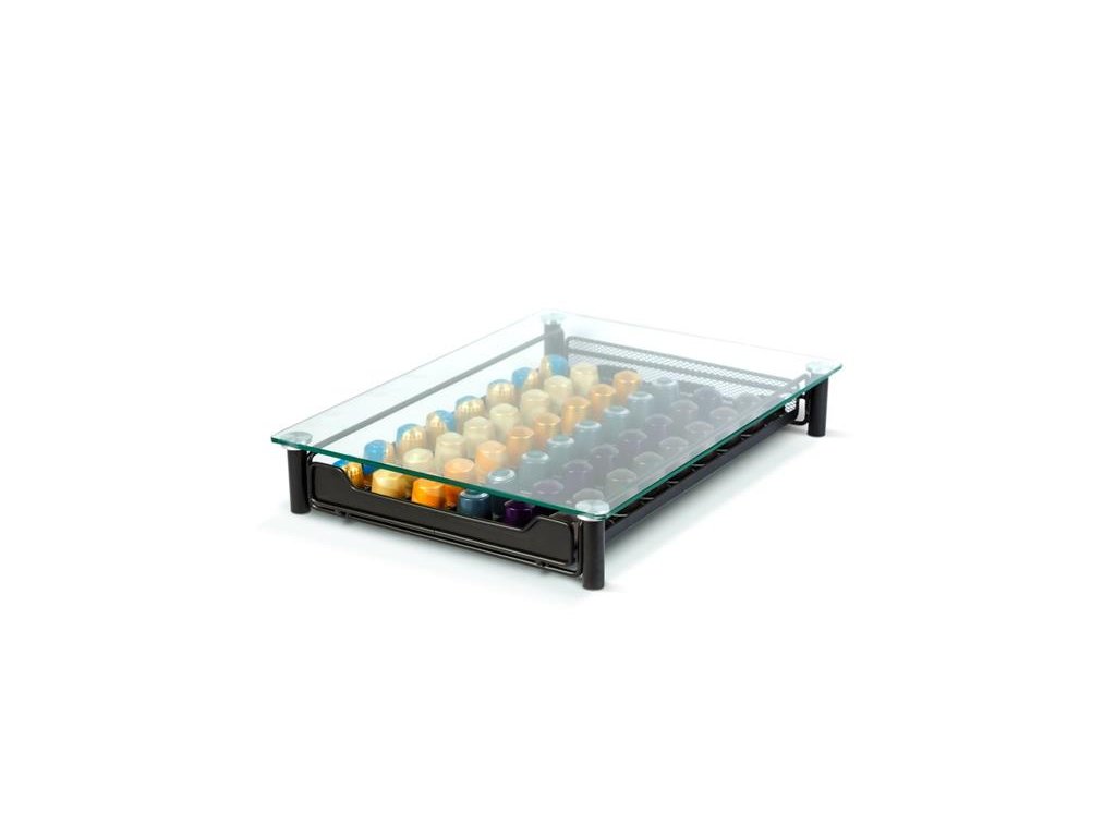 Pokud jste i vy milovníkem kapslí kávy, tento zásobník na kapsle by ve vaší kuchyni rozhodně neměl chybět. Stylové a praktické řešení pro uspořádání Nespresso kapslí. Moderní černý rám a skleněná víčka dodají eleganci každé kuchyni nebo kanceláři. Kovový držák je vhodný pro uložení až 60 kapslí, rozdělených do šesti řad, takže svoji oblíbenou kávu máte vždy po ruce. Díky kompaktním rozměrům se vejde i pod kávovar. Ideální volba pro milovníky kávy pro každodenní použití.
