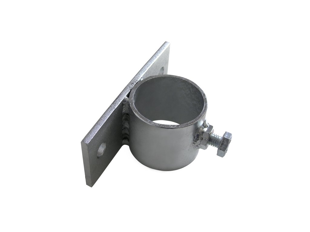 Držák pro upevnění stožáru o prům. 48 mm přímo na zeď, s krátkým pásem se dvěma otvory pro šrouby.