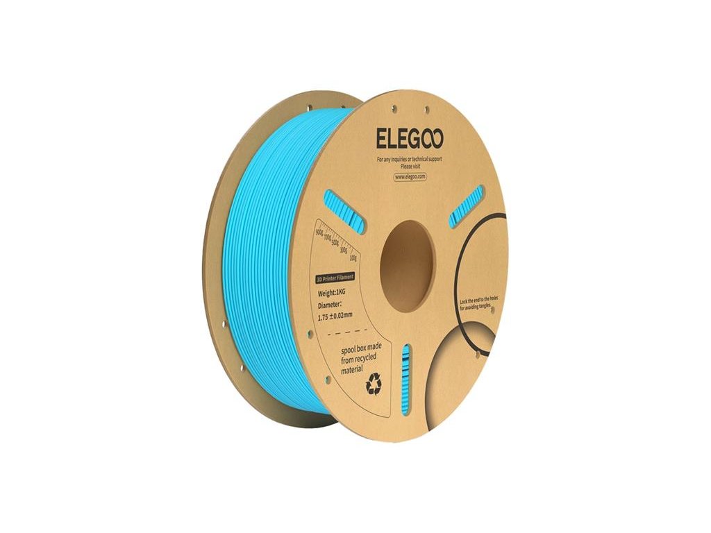 Filament ELEGOO v modré barvě je dobrou volbou, pokud chcete světlý, čistý odstín, který vypadá dobře na větších plochách a v detailech. Materiál má jednotnou barvu a hladkou strukturu, takže výtisky vypadají esteticky a dobře se reprodukují. Je založen na PLA+ (polylaktid plus - biologicky odbouratelný materiál rostlinného původu, obohacený o přísady pro zvýšení odolnosti). Cívka obsahuje 1 kg vlákna.
