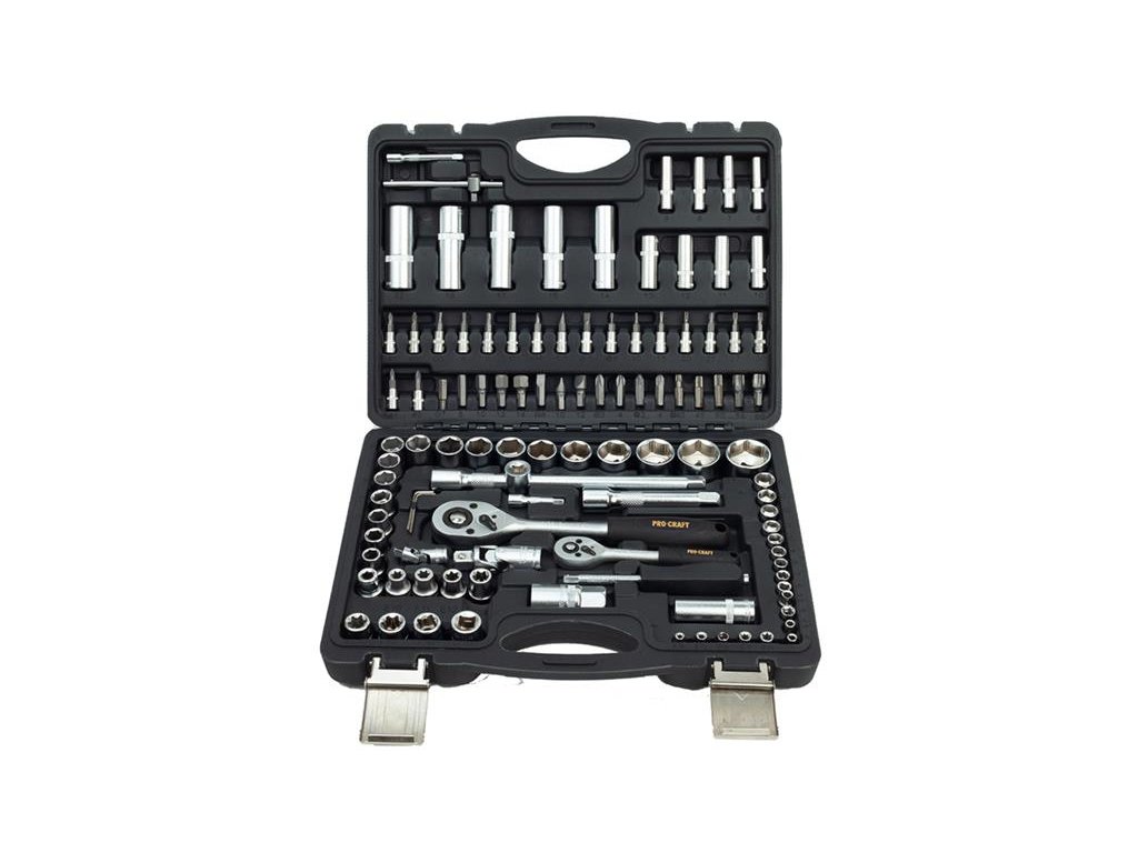 Gola sada Procraft WS-108/72 108 dílů je určena k použití v domácí dílně, ale i pro mechaniky. Hlavice a ráčny jsou vyrobeny z kvalitné chrom-vanadiové oceli (CRV) chrání proti korozí a tvrdý povrch produžuje životnost. Ráčny mají 72 zubů v rohatkovém převodu a jsou vybaveny páčkou. Odolný plastový kufr s kovovým zavíráním usnadňuje dlouhodobé použití a přenášení. Přehledně roztříděné nářadí usnadňují a zrychlují práci. Sada obsahuje ráčny, bity, nástrčné hlavice, šestihranné klíče, vratidla, univerzální klouby, prodlužovací nástavce a šroubovák pro nástrčné bity. Součástí dodávky je plastový kufr.