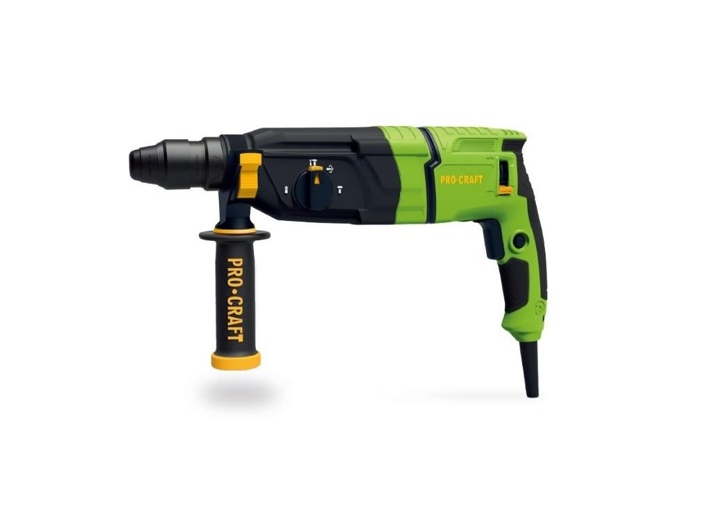 Kombinované kladivo Procraft BH1100 DFR je určeno k práci se stavebními materiály jako jsou cihly, beton nebo kámen. Tři přepínatelné funkce zajišťují všestranné využití kladiva: vrtání s příklepem, sekací funkce. Regulace otáček umožňuje nastavení optimálních parametrů při práci s různými materiály. Díky konstrukci může být použito pro domácí a poloprofesionální potřeby. Pravý a levý chod zajišťuje snadné uvolnění zaseknutého vrtáků. Jako příslušenství lze použít SDS Plus příklepové vrtáky do betonu, ploché - špičaté nebo tvarované sekáče na stavební materiály, hadovité (spitálové) vrtáky a dláta do dřeva. Součástí dodávky je plochý a špičatý sekáč, tři vrtáky a přepravní kufr. Balení karton.