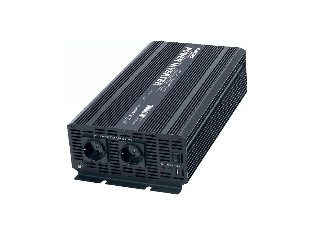 Invertor - Měnič vytváří ze stejnosměrného napětí 24V střídavé napětí 230V . To umožňuje připojení nejrůznějších spotřebičů 230 V ke zdroji napětí jako např. v autě, na člunu, u solárních zařízení na chatách nebo při kempování. Ideální pro připojení digitální kamery, mobilního telefonu, notebooku, tiskárny, lampy, CD/DVD přehrávače, rádia atd.. Měnič je rovněž vybaven USB výstupem pro napájení různých zařízení přes rozhraní typu USB 2.0 . Přístroj obsahuje ochranu proti opačné polaritě, nízkému/vysokému napětí, zkratu, přetížení, přehřátí a vysokému/nízkému napětí baterie.