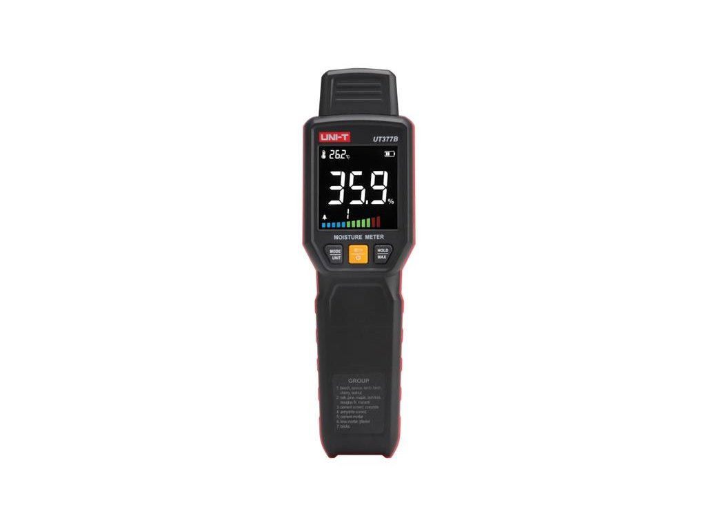 Měřič vlhkosti s kolíky UNI-T UT377B je stabilní, bezpečný a spolehlivý vlhkoměr s LCD obrazovkou pro jasné a intuitivní měření vlhkosti. Nabízí výběr z více druhů dřeva a stavebních materiálů. Je vybaven kompenzací teploty prostředí, což výrazně minimalizuje chyby měření. Díky rychlé detekci, nízké spotřebě energie a vysoké přesnosti se tento přístroj široce používá pro rychlé měření vlhkosti dřevěných materiálů, výroby papíru, překližky, sušení dřeva, dekorací nábytku a stavebních materiálů.