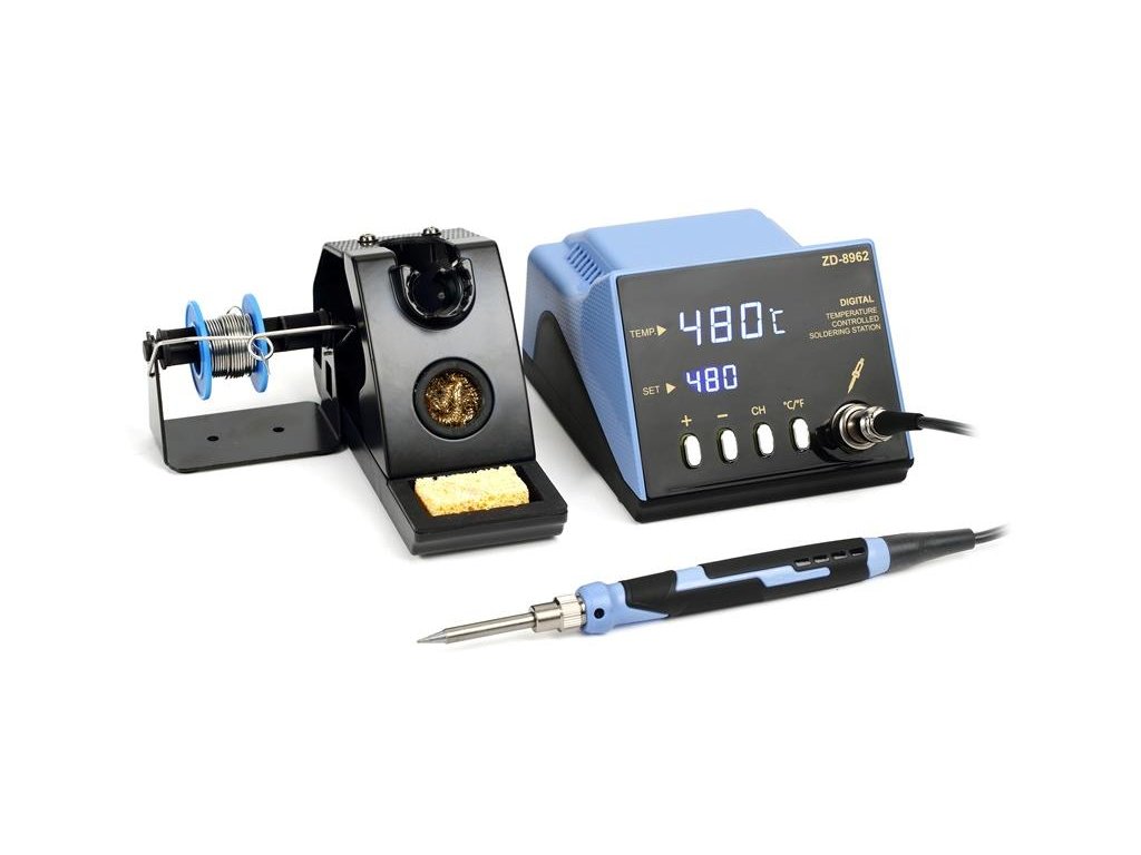 Pájecí stanice (mikropájka) ZD-8962 navržena pro bezolovnaté pájení s nastavitelnou teplotou hrotu v rozmezí 160 až 480°C je vhodná pro jemnou práci v elektronice, Na LED displeji stanice je digitálně zobrazována nastavená a aktuální pracovní teplota pájecího hrotu, kterou lze přesně nastavit. Rychlé zahřátí do 8 sekund a výkon 70 W s rozsahem teploty 160 °C–480 °C. Ergonomický design s flexibilním silikonovým kabelem a stojánkem pro bezpečné odkládání. Výměnné hroty z řady TIP N12-1 až TIP N12-6. Na čištění hrotu je dodávána koule z měděného drátu a čisticí houbička.