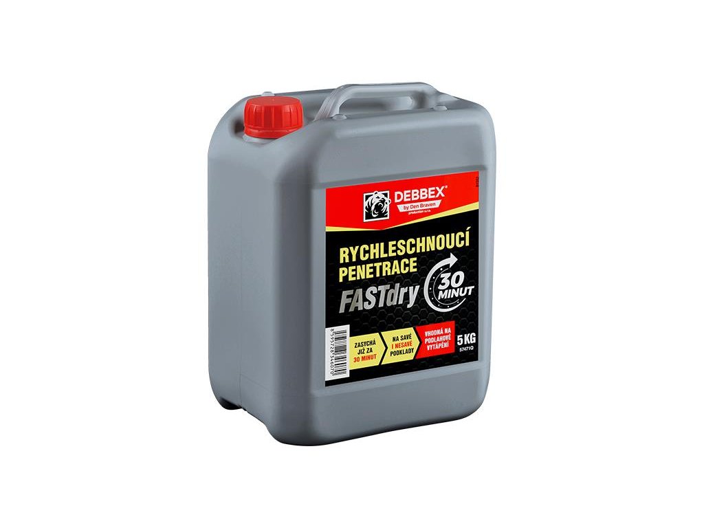 Rychleschnoucí penetrace FASTdry je speciální, rychleschnoucí jednosložkový nátěr, ideální pro savé i málo savé podklady. Doporučuje se k použití pod samonivelační hmoty Den Braven, kde je kladen důraz na rychlé schnutí penetrace, která slouží jako kontaktní můstek před pokládkou stěrek a lepidel.