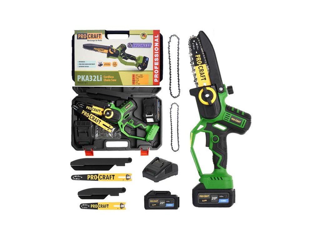 Aku ruční pilka Procraft PKA32Li je výkonná a kompaktní pila určená pro přesné řezání dřeva, větví a drobných konstrukcí. Díky bezuhlíkovému motoru, automatickému systému mazání a snadnému napínání řetězu bez použití nářadí je ideální volbou pro profesionální i domácí využití.
