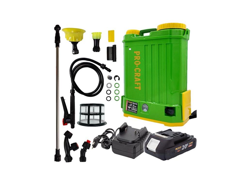 Aku postřikovač Procraft AS20-12 je určený na postřik, rozprašování přípravků a prostředků, ošetřování rostlin a stromů, hubení škůdců a plevele, dezinfekci a čištění prostorů. Po vyprázdnění nádoby dojde k automatickému vypnutí. Spolehlivé čerpadlo s nastavitelným průtokem a tlakem až 5 bar a s integrovaným kontrolním barometrem. Postřikovač má teleskopickou kovovou trubicí a je vyroben z kvalitních materiálů, které pod tlakem nepraskají. Je vybaven gumovým těsněním, které má větší odolnost než standardně dodávané silikonové těsnění. V balení jsou náhradní vyměnitelné trysky, trysky na různý roztřik, praktický zádový popruh, těsnící kroužky a komfortní spouštěcí pistole. Nádoba postřikovače je průsvitná, takže při práci vidíte objem kapaliny.