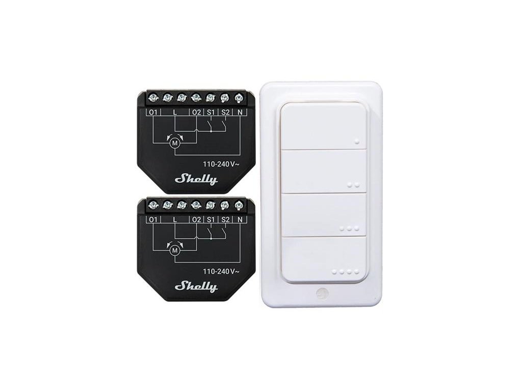 Tento set obsahuje dva WiFi ovladače pro žaluzie/rolety SHELLY Shutter a jednu bezdrátovou tlačítkovou jednotku SHELLY BLU RC 4, která umožňuje ovládat vaše žaluzie nebo závěsy pohodlně a bezdrátově.