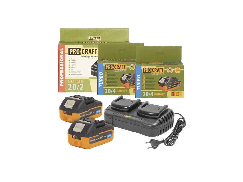 Tato sada je ideálním řešením pro uživatele akumulátorového nářadí Procraft. Obsahuje dvě výkonné baterie 20V 4Ah a nabíječku pro dvě baterie, což umožňuje efektivní a nepřerušovanou práci.