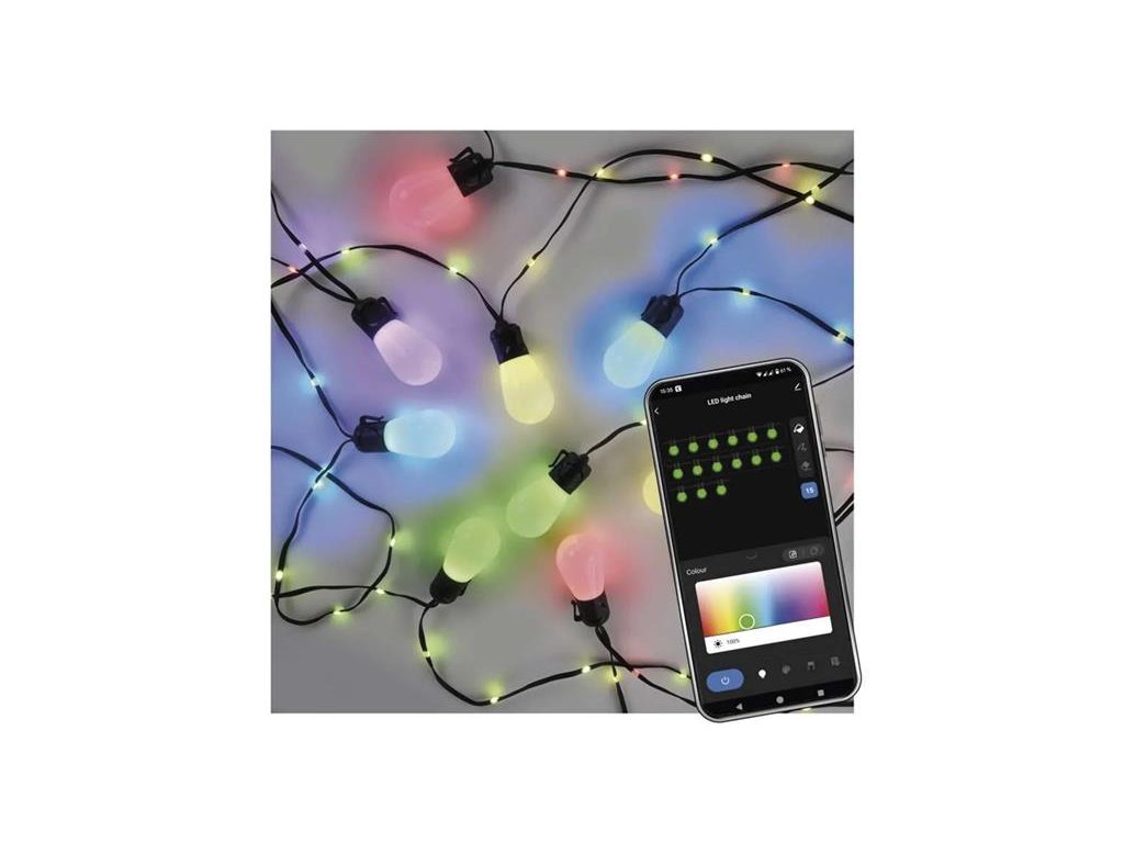 Přidejte svému venkovnímu prostoru jedinečnou atmosféru s chytrým světelným řetězem, který kombinuje klasický vzhled žárovek s moderními RGB efekty.