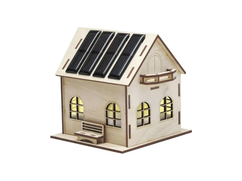 Stojí-li dům na slunečném místě, akumulátory umístěné v domě se nabíjejí pomocí solárních článků. Při setmění se v domě automaticky zapne světlo, které vychází z okem Dům na solární energii je dodáván jako stavebnice.