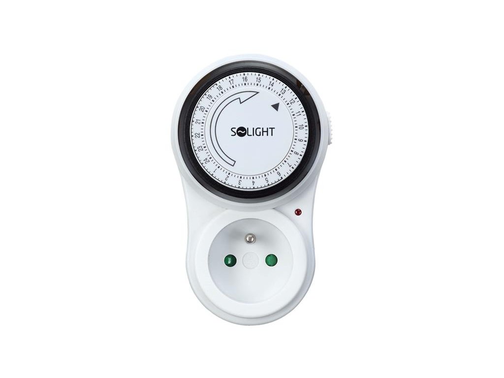 Mechanický časový spínač s rozsahem 24 hodin umožňuje minimální časový úsek nastavení 15 minut. Je vybaven vypínačem, dětskou pojistkou a pracuje s napětím 230V/16A, 50Hz.