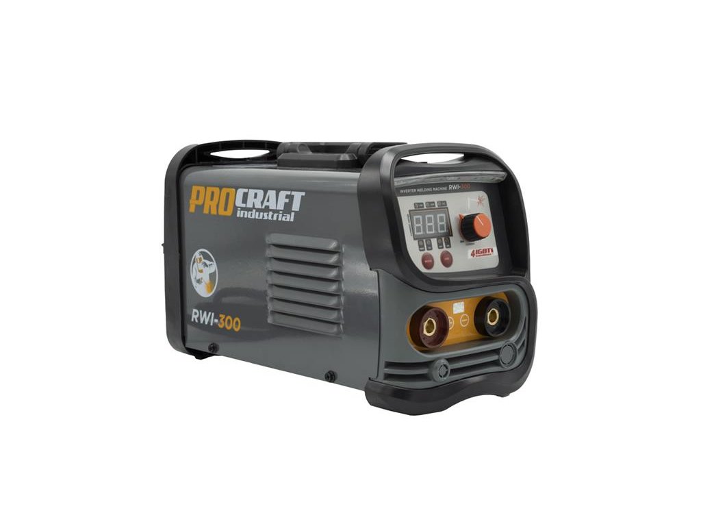 Svářecí invertor Procraft RWI-300 je určen k ručnímu svařování metodou MMA. Výkonové tranzistory IGBT zaručují dlouhou bezporuchovou práci. Regulace svařovacího proudu v rozsahu 20-140A umožňuje nastavení optimálních parametrů při práci s různými kovy. Lze použit svařovací elektrody s průměrem 1,6 až 4,0 mm. Funkce arc force, anti stick, hot start zaručují rychlé a snadné svařování. Pomocí LCD Displeje je zobrazován aktuální svařovací proud. Součástí dodávky je svářečský štít, kabel s držákem elektrod, kabel se zemnícími kleštěmi a drátěný kartáč kombinovaný s kladivem na strusku.