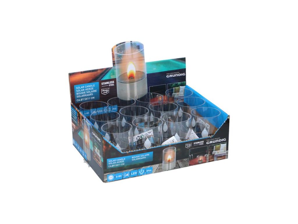 Solární LED svíčka Grundig – realistický plamen, nerezová ocel