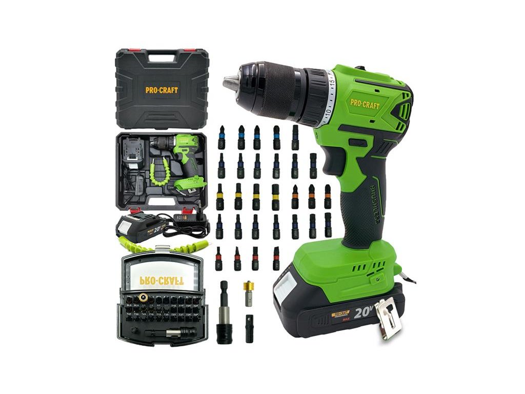 Aku vrtací šroubovák Procraft PA18LiN je praktickým pomocníkem všude tam, kde nechcete být při práci omezováni napájecím kabelem. Stroj je ideální pro vrtání, šroubování šroubů a vrutů, šroubování matic pomocí bitů a 1/4“ nástrčných hlavic. Díky použití moderního a výkonného bezkartáčového (brushless) motoru nabízí vrtačka/šroubovák točivý moment až 50 Nm, který lze regulovat ve 20+1 stupních. Výrazně slyšitelné přeskakování při dosažení nastaveného utahovacího momentu. Mechanická dvourychlostní převodovka umožňuje zvolit správný rozsah otáček v závislosti na prováděné práci: 1 - šroubování; 2 - vrtání. Rychloupínací sklíčidlo umožňuje použití pracovních nástrojů s průměrem 0,8 - 13 mm. Pro usnadnění práce v tmavých místnostech je přístroj vybaven LED osvětlením. Vrtačka/šroubovák PA18LiN se dodává v odolném kufříku spolu s nabíječkou a Li-Ion akumulátorem s kapacitou 2 Ah. Kromě toho je součástí dodávky ohebná hřídel pro práci v těžko přístupných místech.